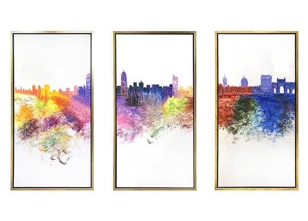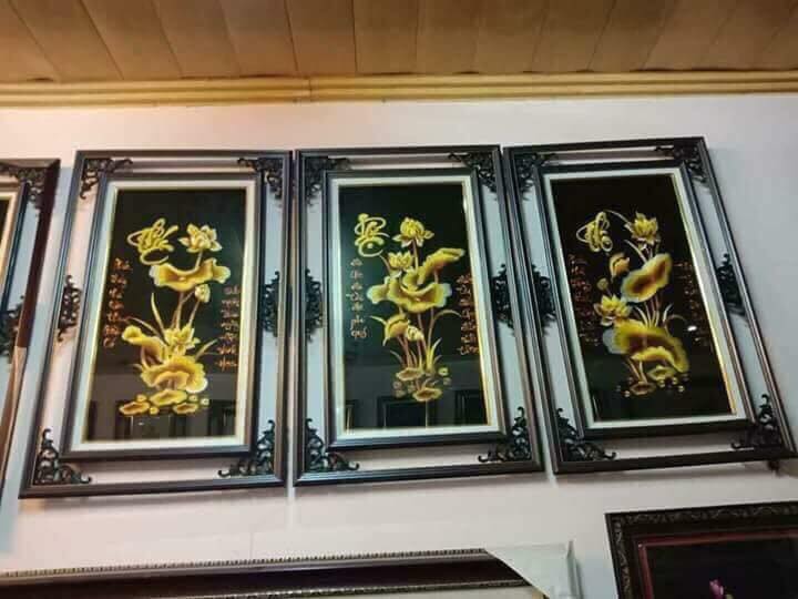 Mẫu khung vàng, viền đen nẹp nhỏ dành cho bộ tranh canvas 3 bức