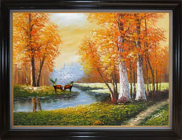 Mẫu khung tranh trơn đen cho tranh sơn dầu size to chủ đề phong cảnh