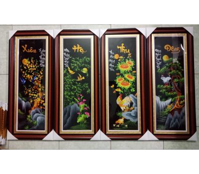 Mẫu khung nẹp đen size nhỏ cho tranh tứ quý 4 bức đóng rời