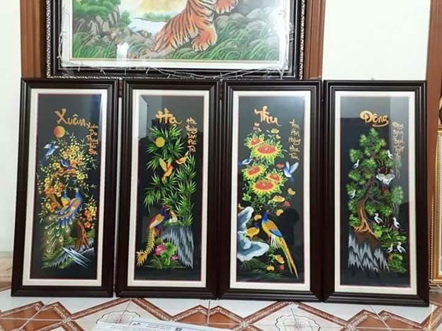 Bộ tranh tứ quý sử dụng khung kép để tạo chiều sâu và kích thích trí tưởng tượng cho người xem